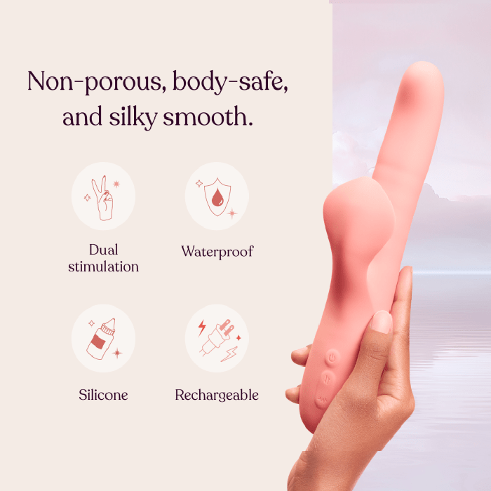 Thrust is a true challenger to the AirVibe as Bellesa's gold ribbon dual stim vibrator – and it's a “needs to be felt to be believed” experience.